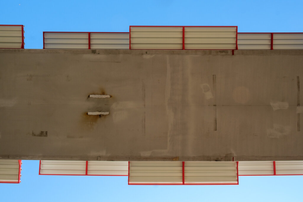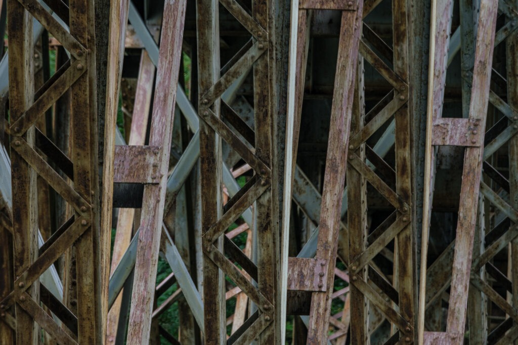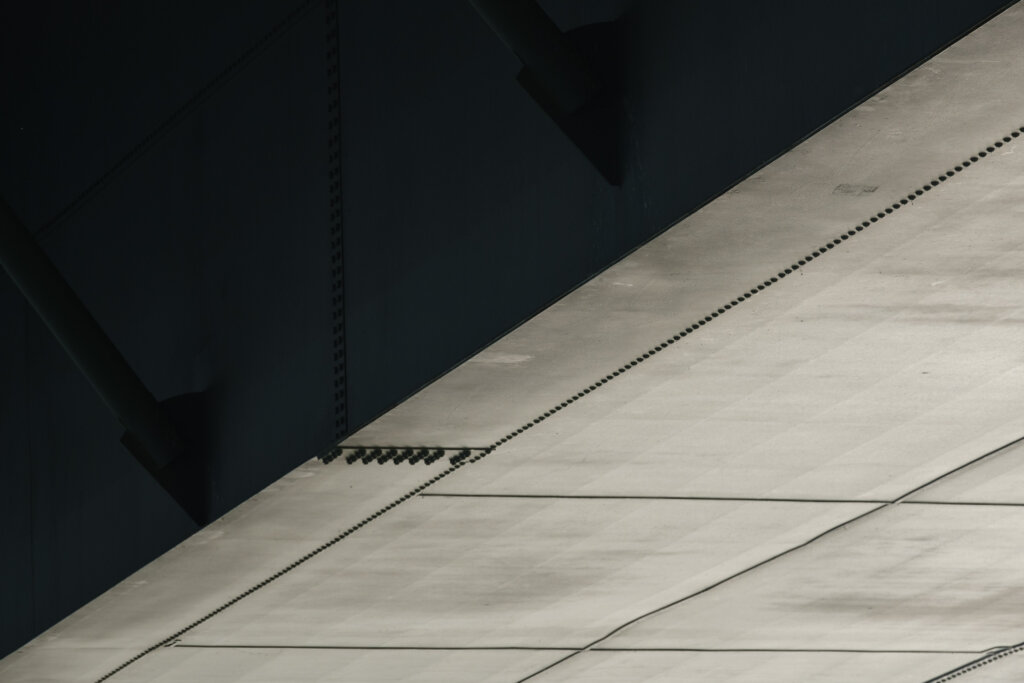 Wo für gewöhnlich achtlos überquert wird, kann auch ungewöhnlich unterquert werden. Wenn man dabei nach oben schaut, kann es schnell interessant, abstrakt, farbig oder gar völlig abstrus werden.